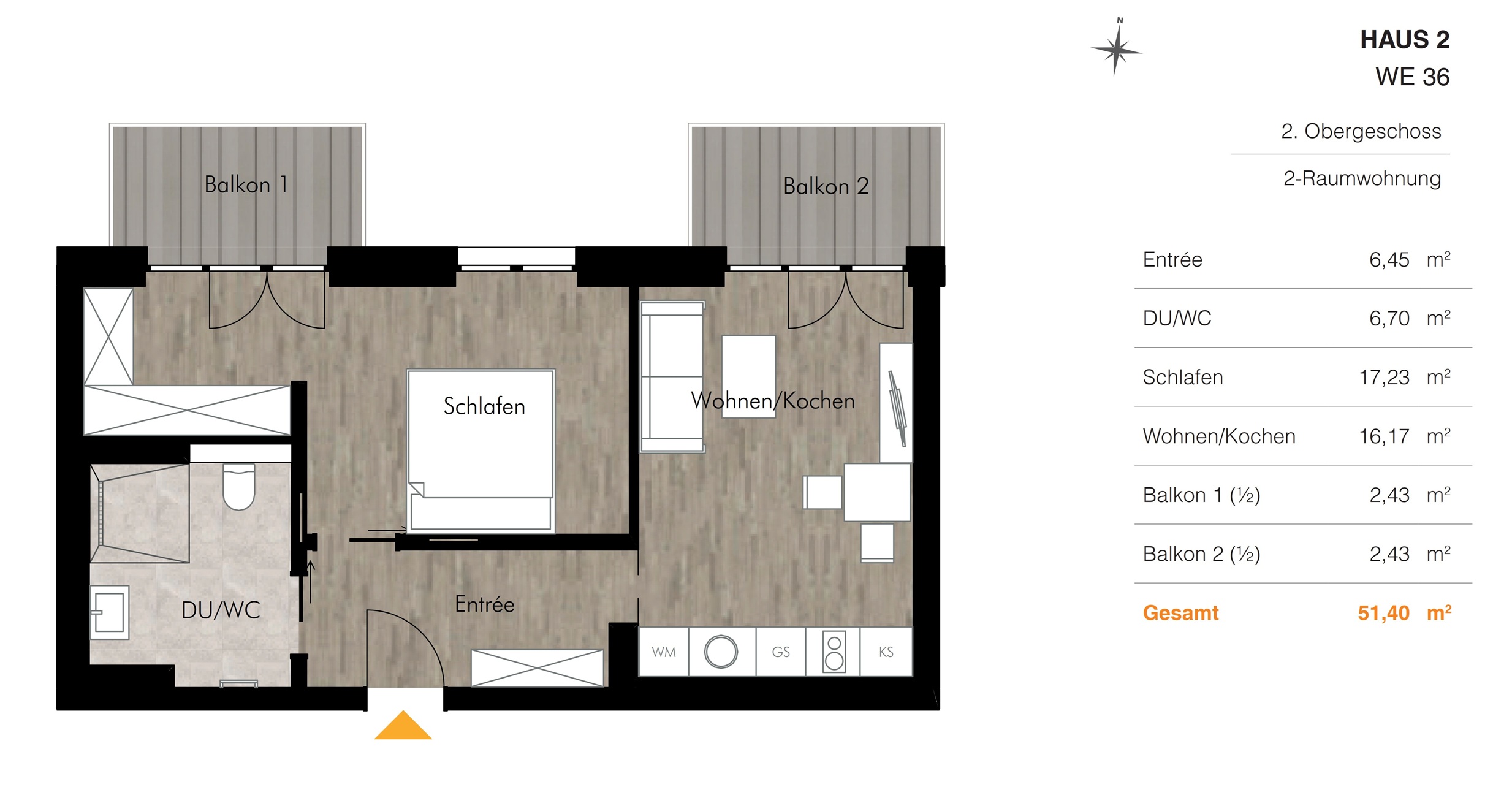 2-Raum-Wohnung mit ca. 51m² - WE 28